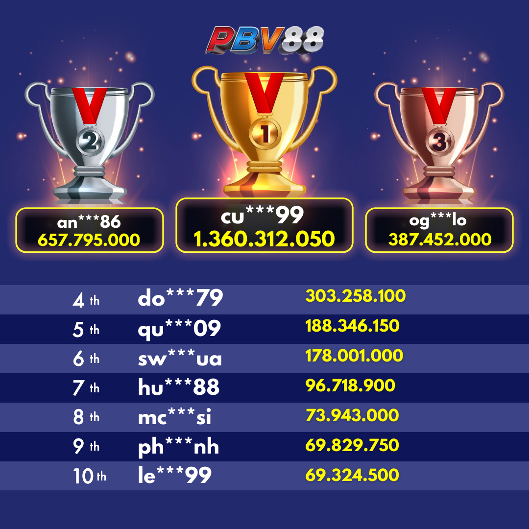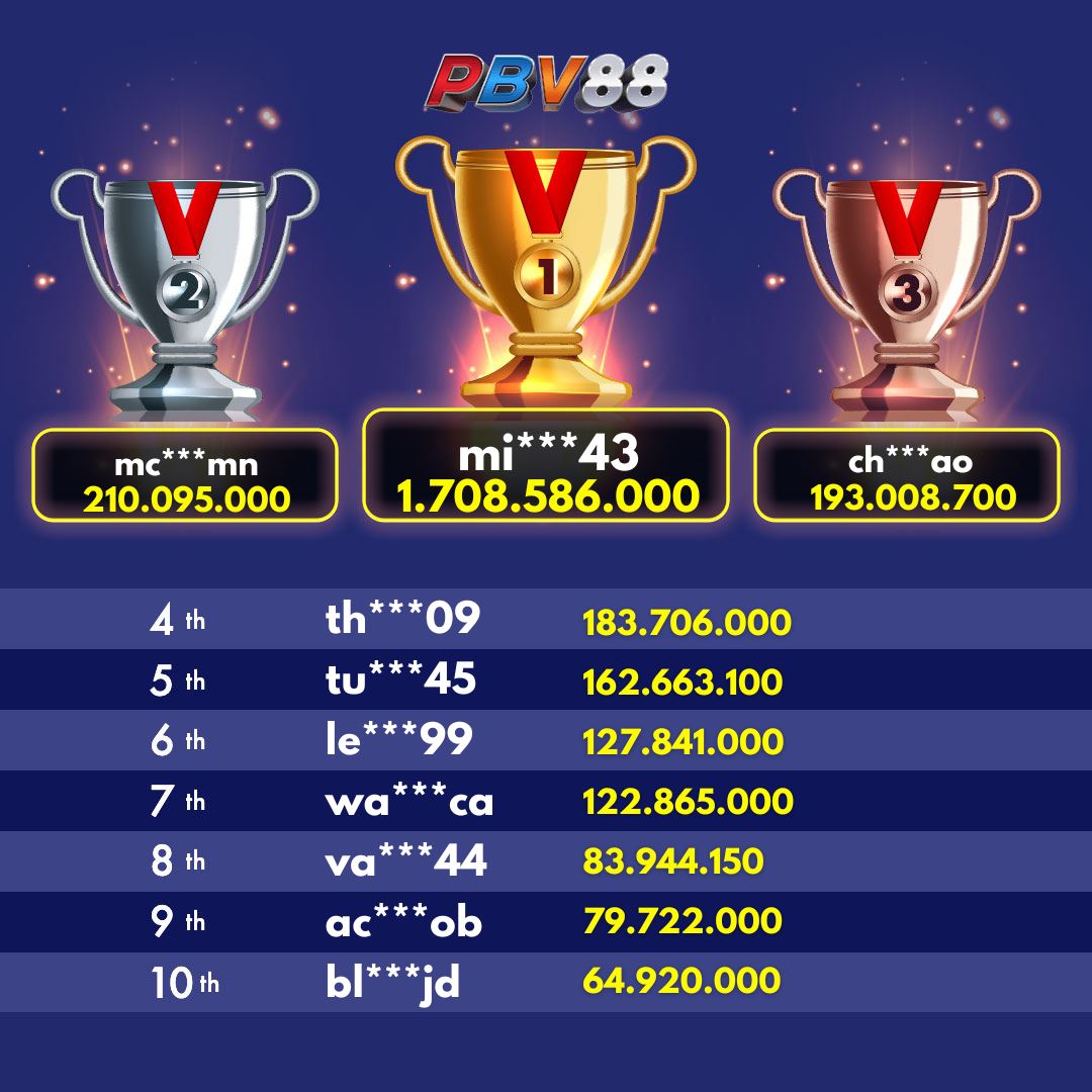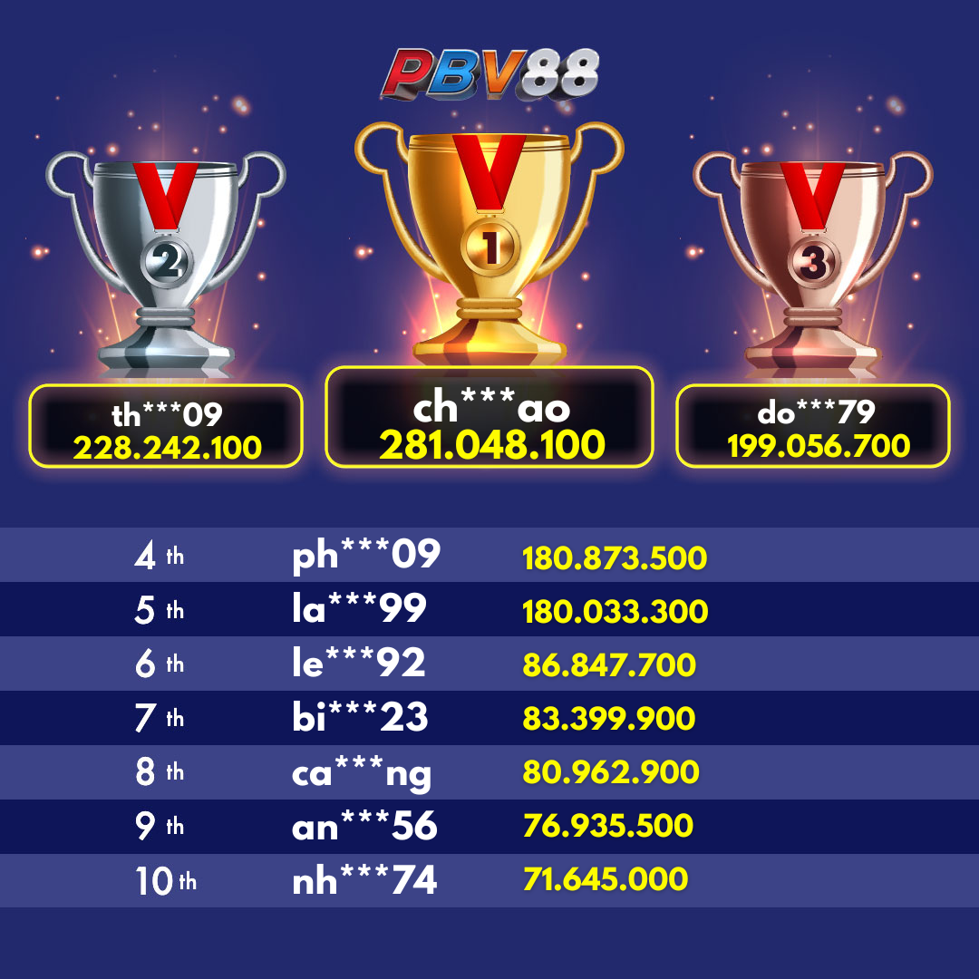 Giải thưởng Top 10 hàng ngày sẽ được cập nhật trước 12:00 trong ngày.