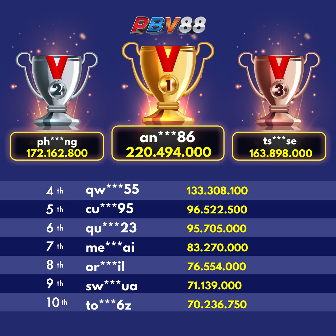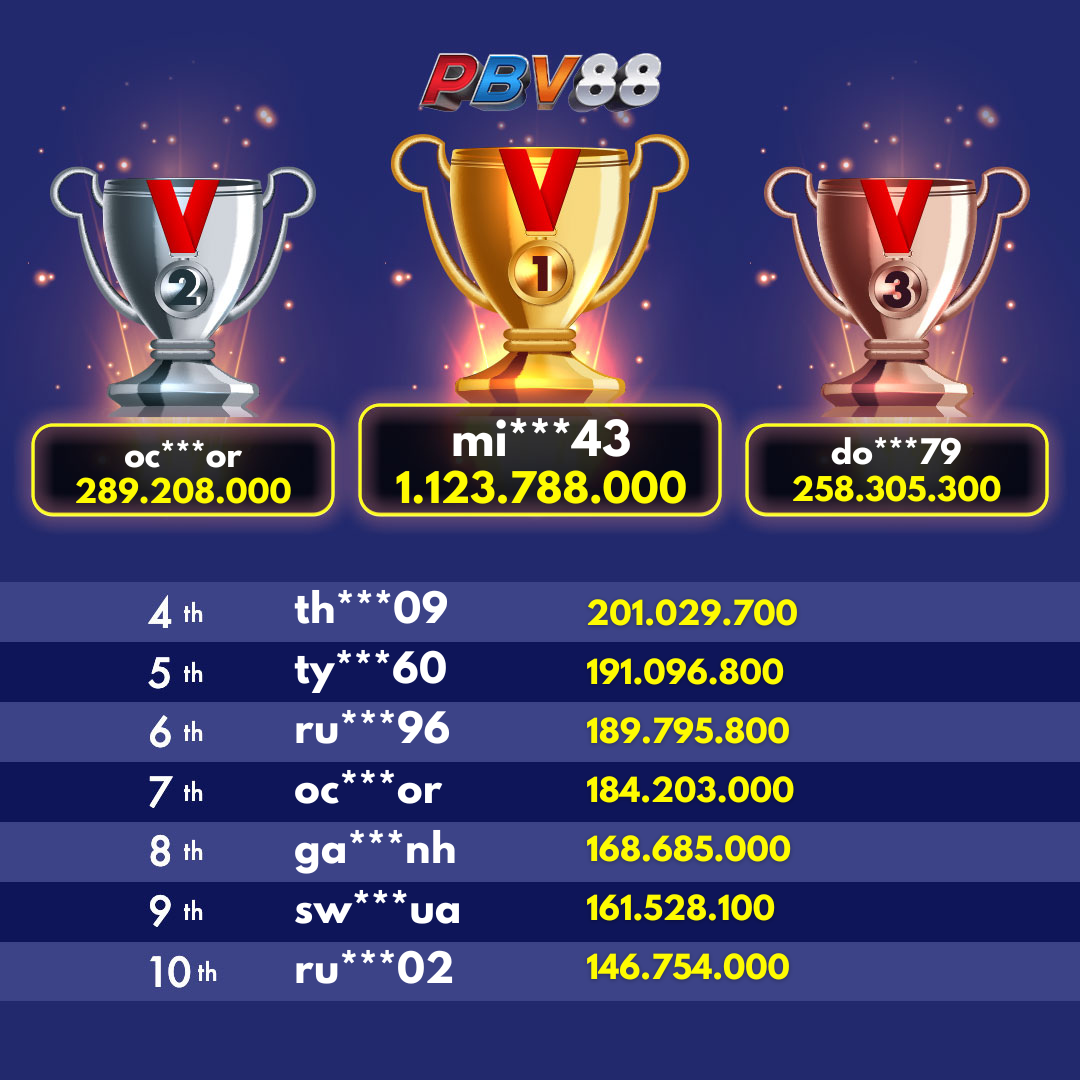 Giải thưởng Top 10 hàng ngày sẽ được cập nhật trước 12:00 trong ngày.